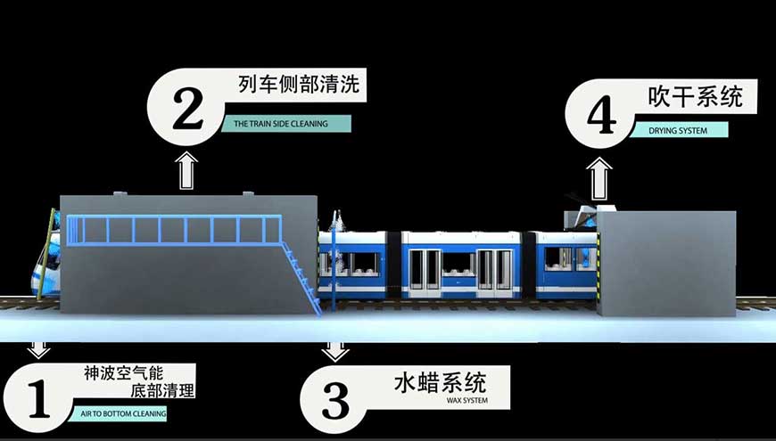 4、列車清洗、上蠟拋光工藝流程符合發(fā)達國家的標準,清潔效果理想。